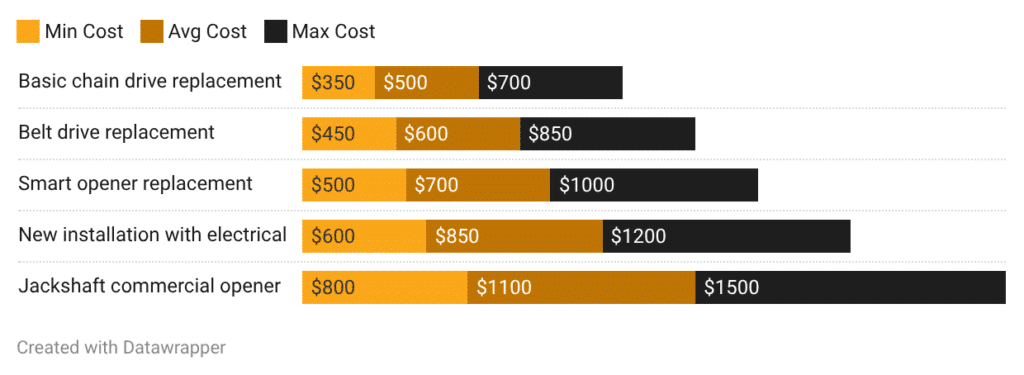 Garage Door Opener Replacement Cost by Type